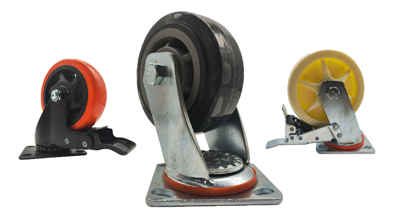 - Material Options: Brackets (galvanized/chromed/electrophoretic steel plates, stainless steel); Wheels (Nylon PA, Polyurethane PU, Rubber, Cast Iron)