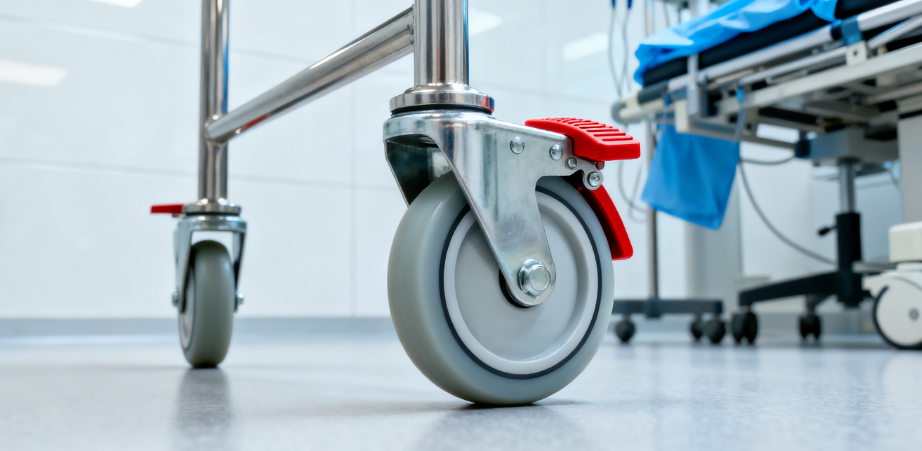 | TPR (Thermoplastic Rubber) | Quiet, mark-free, smooth rolling | Medical carts, laboratories, clean rooms |